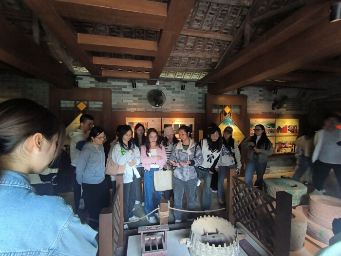 讲解员首先向师生详细介绍了美丽南方忠良村的总体情况。描述了忠良村依托土地改革遗址创新红色产业,实现了将“红色资源到红色文化”的生动转变,带动了忠良村产业振兴的过程。随后,全体党员同志走访调研忠良村建设情况。在工作人员的带领下,先后参观了村委大院、农耕文化展示馆、土改文化展示馆、知青文化博物馆等。
